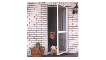 Der als Spannrahmen beschriebene Insektenschutz kann auch als Tür Verwendung finden. Er wird dann mit Drehscharnieren geliefert, die an der Wand befestigt werden. Als die einfachere Ausführung ist er so eine preiswerte Alternative zur Tür als Rahmenflügel, vorwiegend im Wohnereich einsetzbar. Die Querriegel in der Mitte und das breite Stossblech unten garantieren zusätzliche Stabilität.