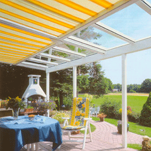 In Verbindung mit einer exakt darauf abgestimmten Wintergartenbeschattung können Terrassen zusätzlich angenehm beschattet werden.